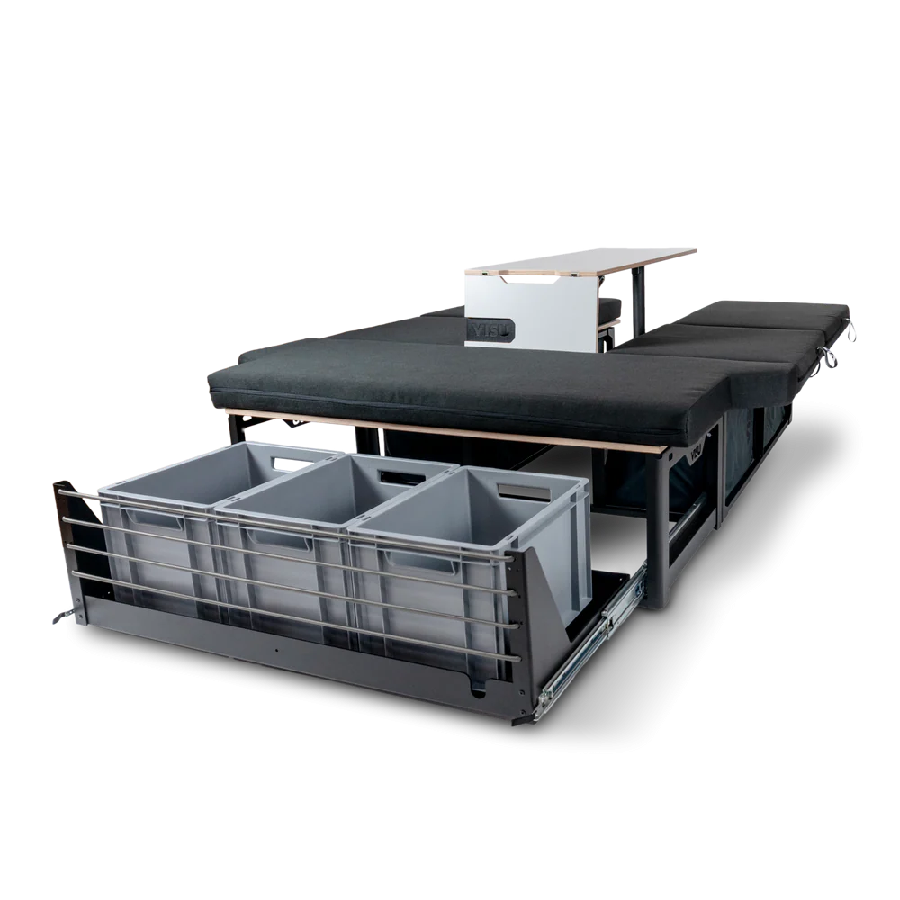 Visu Sitka:3 Plus je vyberateľná spacia a kempingová vstavba pre stredne veľké dodávky. Vstavba ponúka dostatok úložného priestoru, či už v praktických taškách prístupných zvnútra vozidla, alebo v zadnej výsuvnej zásuvke. Veľké lôžko je možné v priebehu niekoľkých sekúnd premeniť na priestranné posedenie so stolom až pre 4 osoby. Modul zvládne jedna osoba nainštalovať za 15 minút bez použitia náradia.
