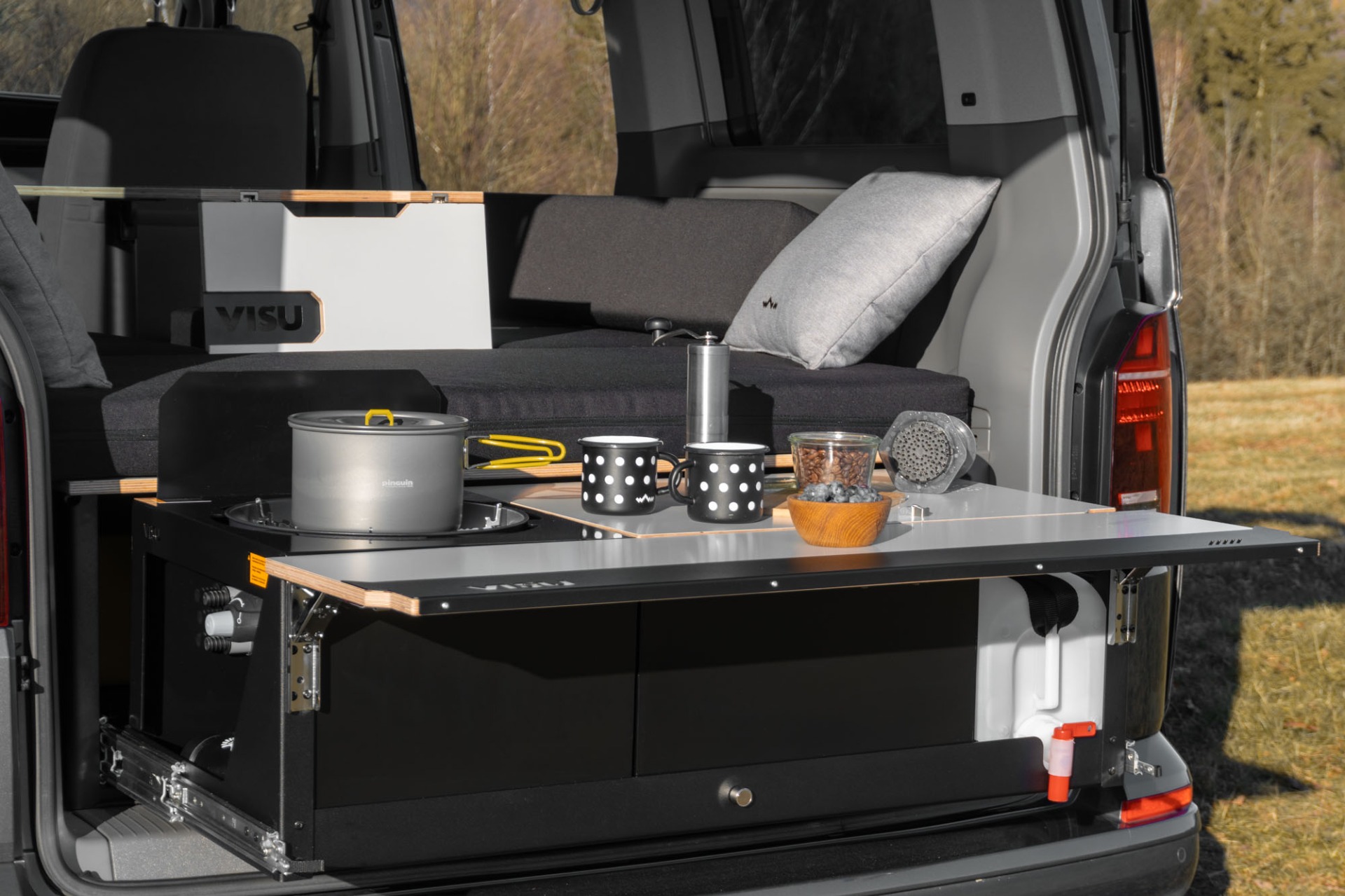 Visu Sitka:3 Max je vyberateľná spacia a kempingová vstavba pre stredne veľké dodávky. Max je ideálne riešenie pre ľudí, ktorí nechcú robiť kompromisy. Jedná sa o plne vybavený modul s výsuvnou kuchyňou s grilom a nádržou na vodu. Veľkú posteľ je možné v priebehu niekoľkých sekúnd premeniť na priestranné posedenie so stolom až pre 4 osoby. Modul zvládne jedna osoba nainštalovať za 15 minút bez použitia náradia.